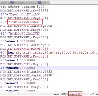 Randomized Key and Value Names: The key names (e.g., mKey8177, mKey4824, JunkKey1602) and value names (e.g., RandomValue144, RandomValue208) are seemingly random, indicating potential automated generation or obfuscation.
