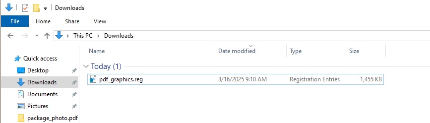 4) Clicking the link in the PDF downloads a malicious registry file called "pdf-graphics.reg".