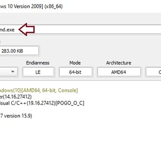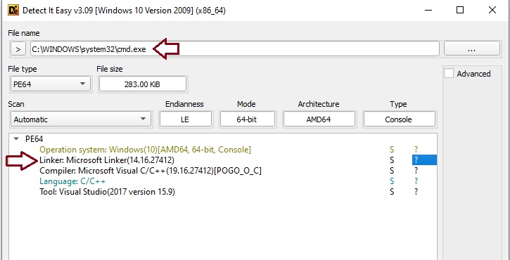 When we inspect this file with Detect It Easy (DIE), the information displayed is that it is indeed a CMD.EXE and a Linker: Microsoft Linker.